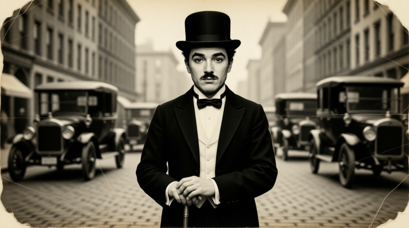La caméra commence au niveau des pieds du personnage se tenant au centre d’une rue d’un centre ville désert, puis pivote lentement vers le haut le long de son corps jusqu’à son visage, révélant sa stature, immeubles en arrière-plan, mouvement fluide et cinématographique, lumière de fin d’après-midi. Format 16:9, haute définition (HD).
